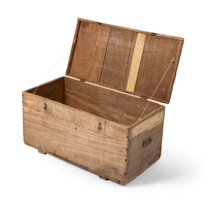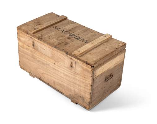 pine with black stencilled name M. A. CARDEW (to top) and metal side handles