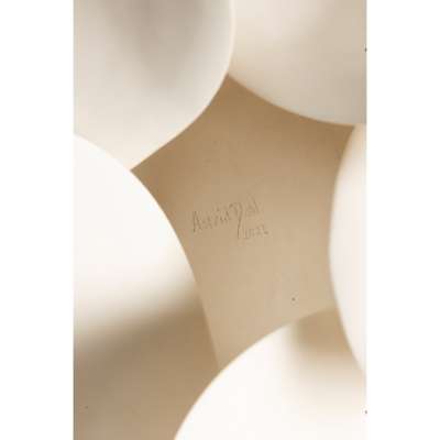 signed and dated, white earthenware, fired, sanded and waxed