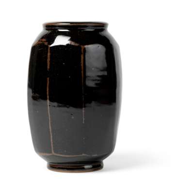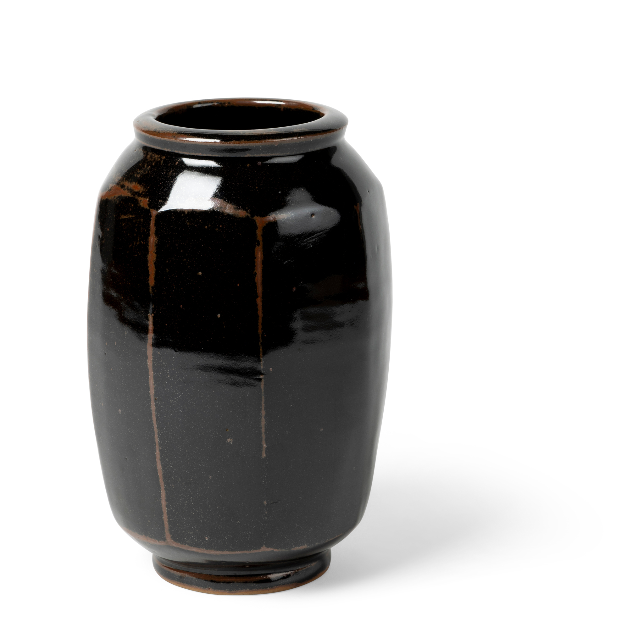 stoneware, with tenmoku glaze, cut sided
