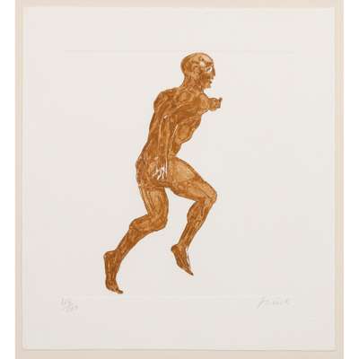 signed (lower right) and numbered 46/100, etching and aquatint on wove paper. Printed by Kelpra Studio. Published by Harpvale Books as the frontispiece for the deluxe edition of the Elisabeth Frink Sculpture - Catalogue Raisonné