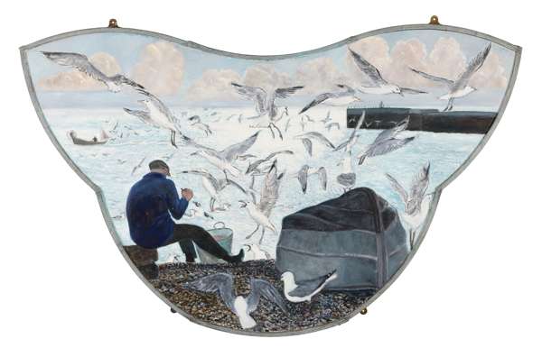 signed, titled and dated (to reverse), oil on shaped board