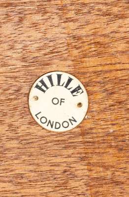 model 677, manufacturer's HILLE OF LONDON circular label (to underside), walnut and enamelled metal
