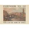 The ‘Everywhere you Go, You can be Sure of Shell’ series featured fine landmarks, historical sights and inspiring landscapes, all firmly located in the countryside. It was an idealized view of a rural order much sought after by the middle classes, particularly those from large towns. ‘By celebrating and making accessible such rural delights, Shell won the plaudits of powerful pressure groups who sought to protect the countryside from urban expansion and the destruction of rural amenities by advertising hoardings’. The first exhibition of these Shell posters took place at the New Burlington Galleries in June 1931.
