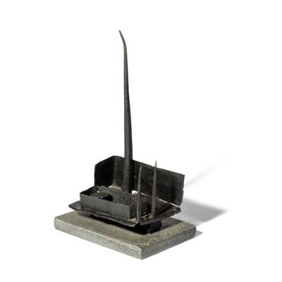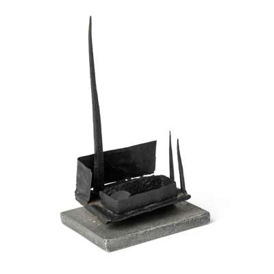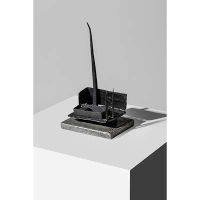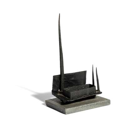 This work also has variant titles of Man, Man as a Fortress and Maquette. As Peter Black has written: 'Clarke uses allegory and symbol; he is interested not in the historical moment but in permanent truths about Man. His Man figure [including in Symbol for Man VIII]...who appears first in the aquatints, and was developed in iron sculptures made 1950-4, is conceived as a monument. He is sometimes tree- and plant-like. In other incarnations he resembles a man-made structure such as a giant crane...In others again 'Man' becomes fortress-like; static and enduring, but sentient and spiritual.' (Peter Black, 'Introduction', Geoffrey Clarke: Sculpture, Constructions and Works on Paper 1949-2000, London, 2000, p. 8.)