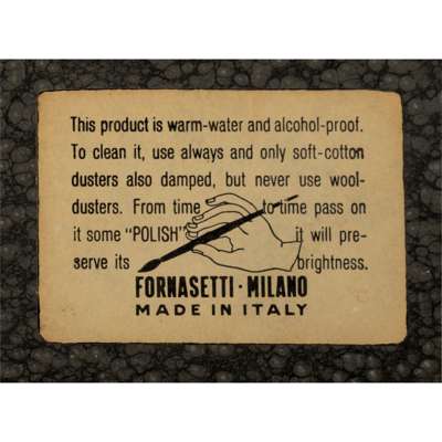 maker's label, hand-coloured lithographic print on lacquered wood, enamelled metal and brass