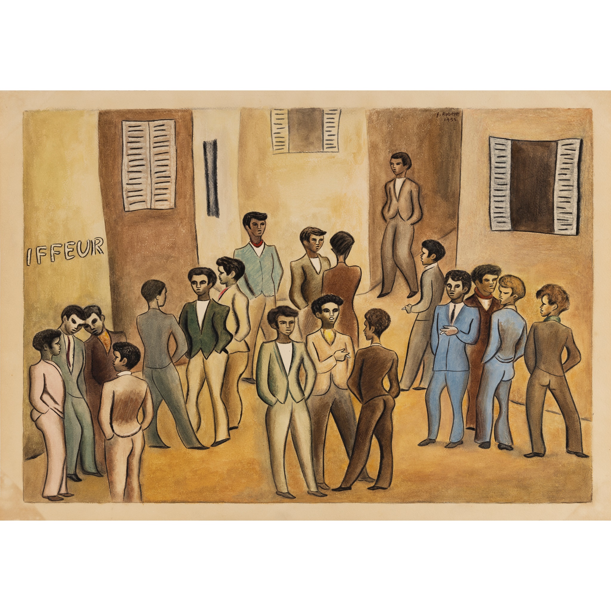 Group of Young Men Outside the Hairdressers, Design for Tapestry, 1955