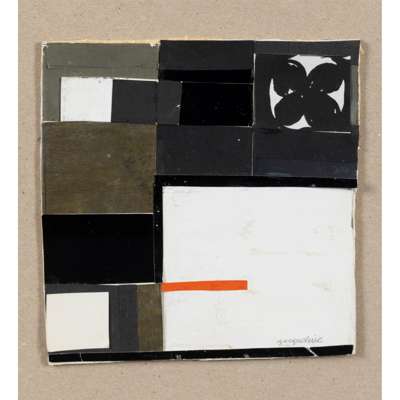 signed Jacqueline in pencil (lower right), collage and mixed media