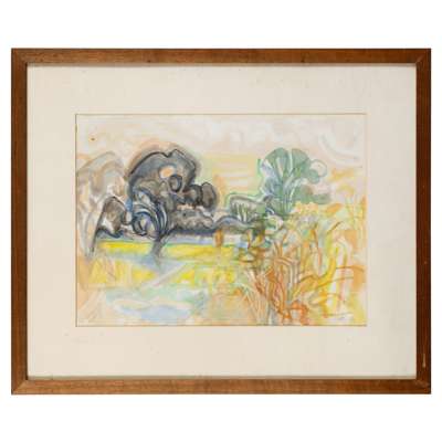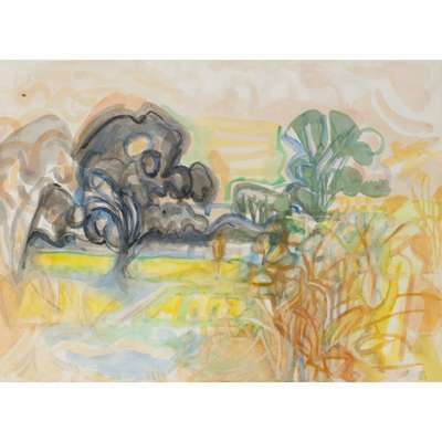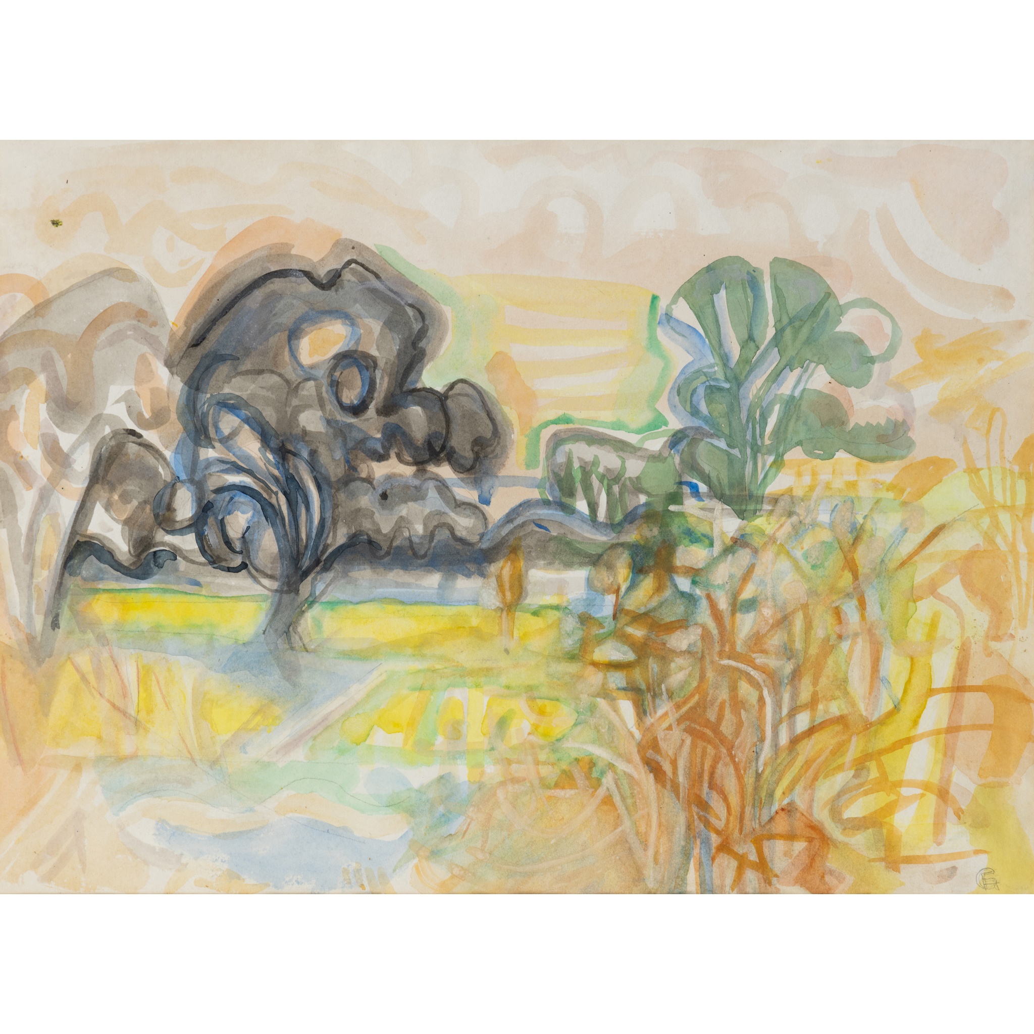 monogrammed in pencil (lower right), titled on label (to reverse), watercolour and pencil on paper
