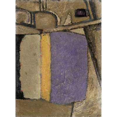 Prunella Clough’s emergence within the post-war British art world followed training at Chelsea School of Art and Camberwell School of Art, either side of a role in the Office of War Information (USA) during World War Two. As the following group of works demonstrates, ‘once she had hit form, Prunella Clough went her own tough sweet way, and there is an underlying consistency, a continuous coherence of vision, from…her first decade through to the most fanciful and mysterious of her beautiful late paintings.’ (1)
