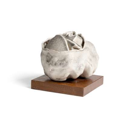 grey-glazed ceramic on wood square base