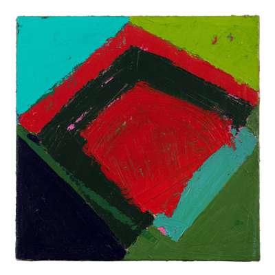Anthony Frost is the son of Terry Frost, and as a student of Ann Sutton's at the Banbury Art School, in the late 60s, he took part as a 'knitting needle' in a conceptual TV project. His studio is in Penzance. These two works were painted at a time when a group of young Cornish artists included a postman, who would supply his friends with strong sacking postbags to make canvases for their paintings.