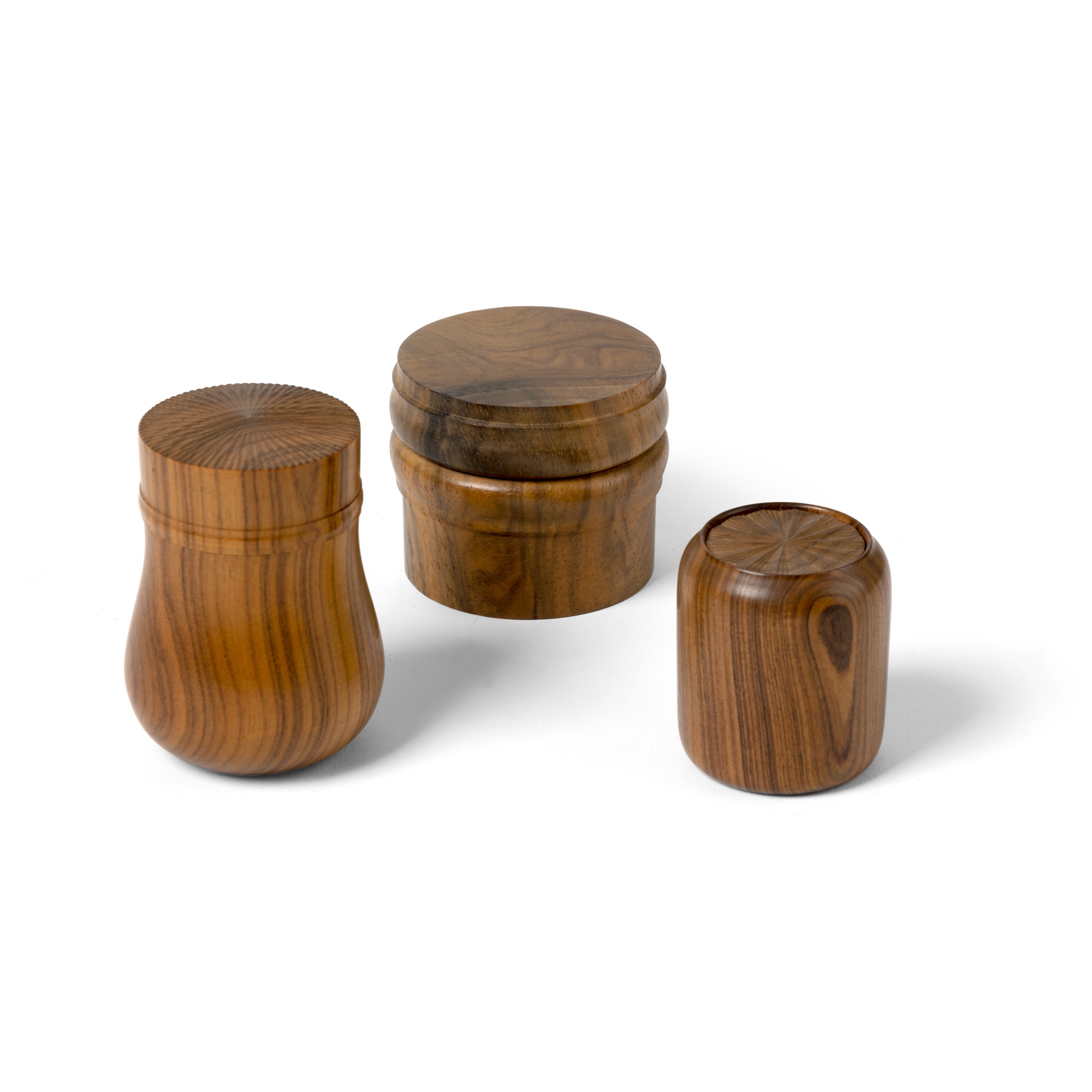 each with maker's mark (to base), the two kingwood examples with label numbered 131 and 134 (to base), two boxes in kingwood and one in English walnut