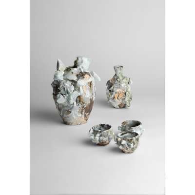 faintly painted artist's mark, stoneware with porcelain deposits