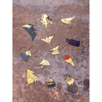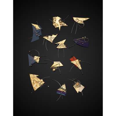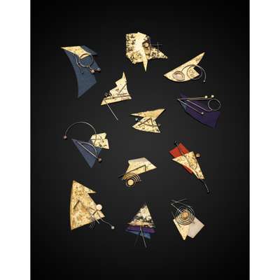 silver, yellow metal, paper and gold leaf, from Ornaments for Woman With The Hair Net from the Picasso Series, ten hallmarked for London and stamped 925