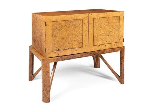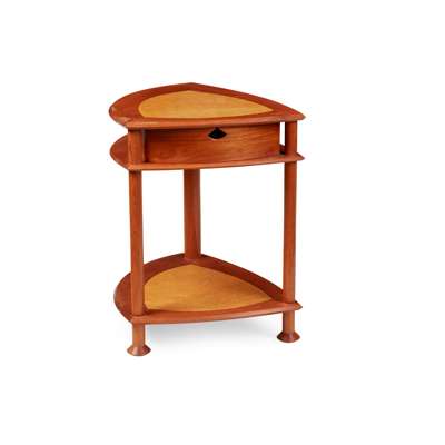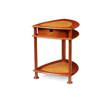 each stamped JOHN MAKEPEACE, with inscription (under each top), walnut, birds eye maple and leather