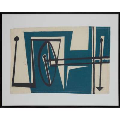 In an attempt to gain publicity for the growing St. Ives art scene in the 1950s, Denis Mitchell and his brother formed the company Porthia Prints. They encouraged local artists to submit original designs, which would then be screen-printed onto pieces of linen and sold as table mats. Terry Frost, who sometimes helped Mitchell with the printing of the textiles, described one reason for the venture as ‘just a way of making a bit of extra money’ for all the artists concerned (quoted in Geoffrey Rayner et al., Textile Design: Artists’ Textiles 1940-1976, Antique Collectors’ Club Ltd., 2014, p.92).