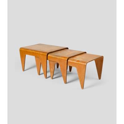 This design was created in February 1936, around the same time as Breuer was perfecting the Long Chair. The earliest models of the nesting tables were made by Venesta in Estonia, with later production moved to England.