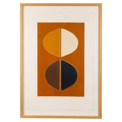 Unconstrained to one medium, simple shapes of undulating and geometric form recur across much of his work. So too does a distinctive palette of earthy brown tones disrupted by jewel-like reds, greens and blues. His reference points are diverse: from his family roots in the Celtic revival (his father was Irish dramatist Sean O’Casey) and his interest in ancient and non-Western culture (for example the Navajo-inspired geometric patterns which appear in his weaving), to the distilled modernist forms of the Bauhaus and the work of St Ives forebears like Ben Nicholson.