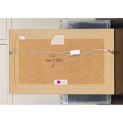 One key recurring motif is the number three, which took on an almost magical quality for O’Casey. We can note this in the iconography of some of the pieces offered here. In the 1966 assemblage, Construction, we find three simple bands of colour reading as an abstracted, minimalistic take on a natural landscape, to the more monumental Duo, which places three band-like shapes to delineate space in the pictorial plane.