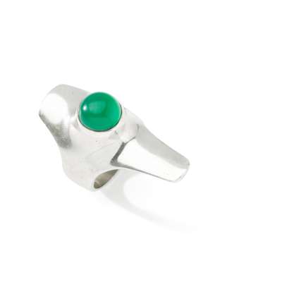 model 154, stamped manufacturer's mark, 925S / DENMARK / 154, silver and green chrysoprase
