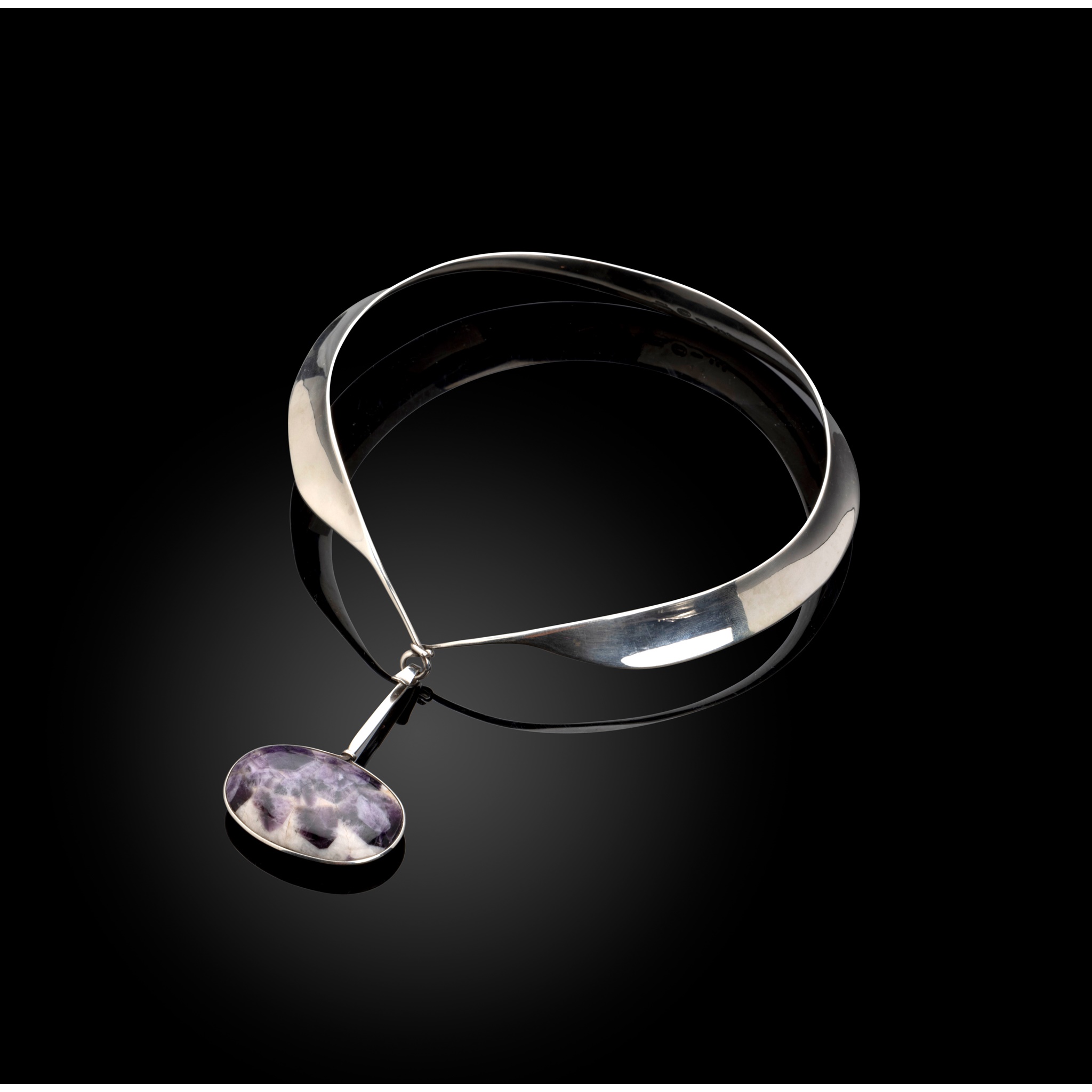 collar model 160 and pendant model 133, each stamped manufacturer's mark, TORUN, 925S / DENMARK, silver set with amethyst