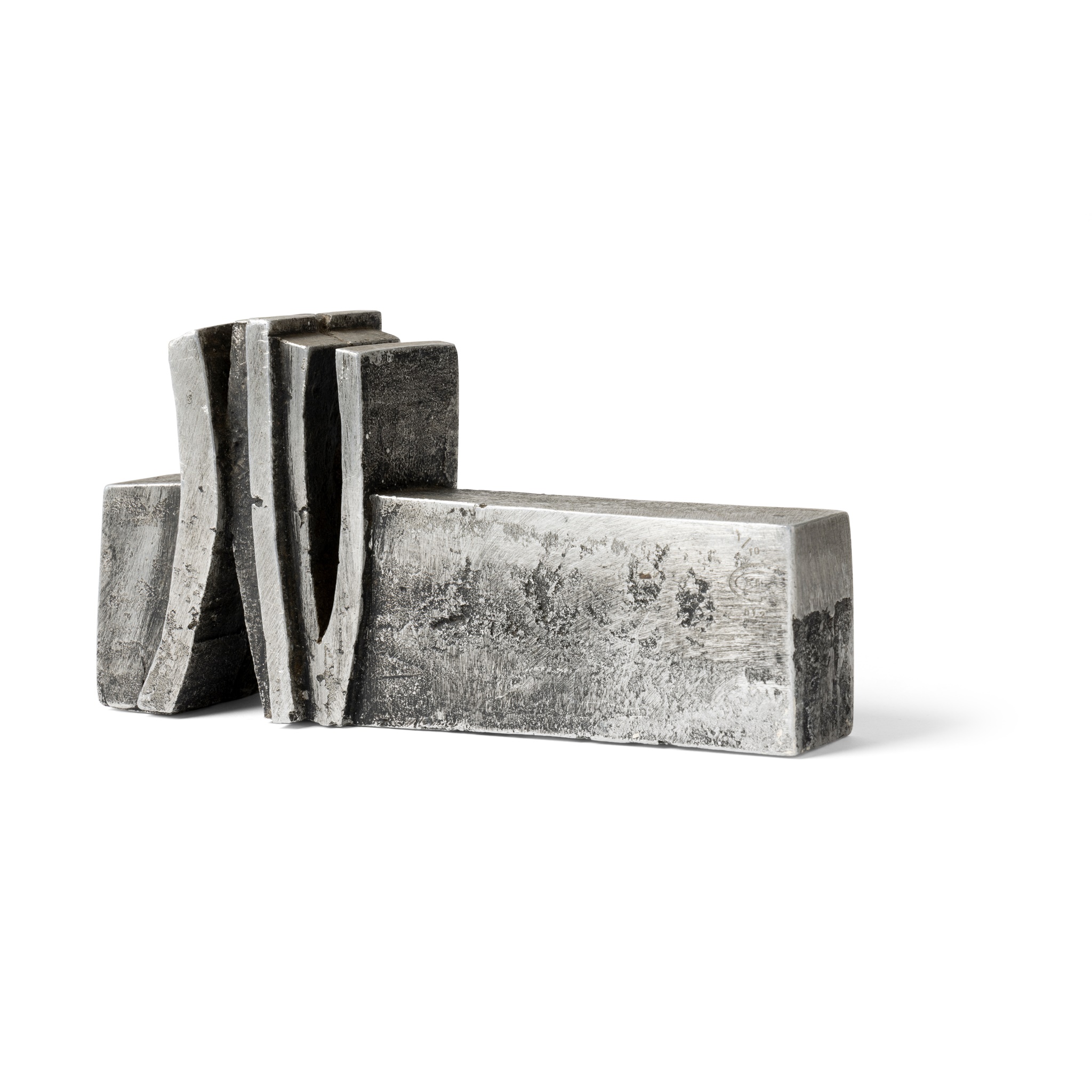 Head I of 1951 comes from an early series and was made whilst Clarke was studying at the Royal College of Art in London. Worked in iron, it reveals an exploration of Cubism and Surrealism with a frank appreciation of the materiality of his medium. Clarke graduated the following year, with his talent being immediately recognised with nothing less than his inclusion in the New Aspects of British Sculpture exhibition in the British Pavilion of the 26th Venice Biennale that summer. Clarke’s work was shown alongside that of seven other sculptors, namely Robert Adams, Kenneth Armitage, Reg Butler, Lynn Chadwick, Bernard Medows, Eduardo Paolozzi and William Turnbull. He was therefore positioned within the vanguard of post-war British sculpture and his career was launched to spectacular effect.