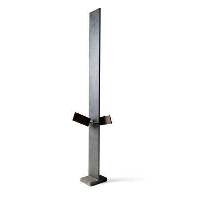 The results of Adams’s unusual training of evening classes at Northampton School of Art, followed by two years of independent study and experimentation, gained him his first solo exhibition, at Gimpel Fils in London in 1947; this marked the beginning of a long and fruitful relationship between artist and gallery. A teaching post in the capital’s Central School of Art provided the opportunity to learn how to weld, with the result that Adams became one of the pioneers of this technique in British sculpture, along with Reg Butler and Lynn Chadwick. Vertical Form No. I of 1965 shows how Adams’ mastery of welding resulted in works of dignified, abstracted beauty. It encapsulates his favoured asymmetry and acute sympathy with the quality of his materials and was included in a solo exhibition at Gimpel Fils the following year.