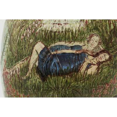 signed and dated, from the Molly's Odyssey series, painted earthenware