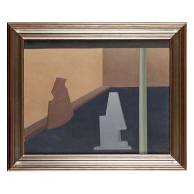 Albert Reuss’s work often evoked connections with Surrealism and in particular the work of Salvador Dalí and Giorgio de Chirico. Objects often inhabit and float in space: a dress-maker’s mannequin, three-legged chair or an isolated tree irregularly sit in abandoned landscapes having lost connection to their normal environment, which was presumably partly a reflection of Reuss’s own displacement.