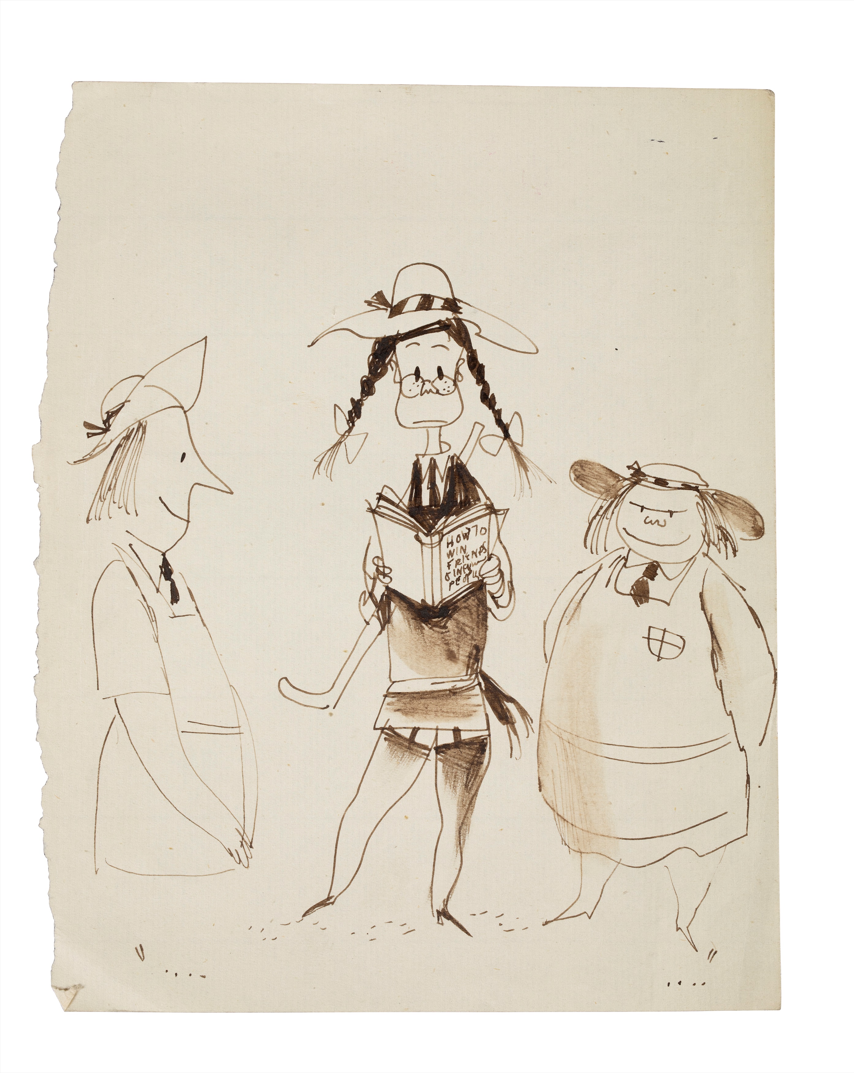 Ronald Searle’s drawings of St. Trinian’s School have come to be synonymous with British culture and humour, and examples of his St. Trinian’s drawings can be found in numerous major private and public collections including the Deutsches Museum fur Karikatur und Zeichenkunst in Hanover, and the Victoria & Albert Museum in London. The following works come from direct descendants of the artist.