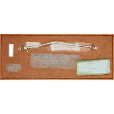 Signed and dated (to reverse), inscribed with title frame (to reverse), inscribed 'Anchor Studio, Trewarveneth Street, Newlyn, W. Cornwall', oil and pencil on board