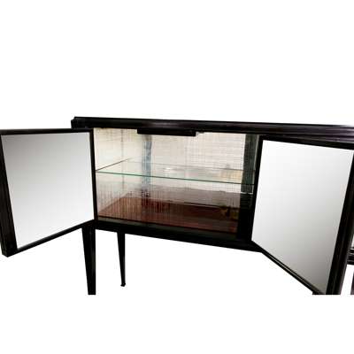 This cabinet has a number of elements suggestive that this could be a design by Paolo Buffa, such as the decorated mirrored panels and the fine shaped legs and supports.