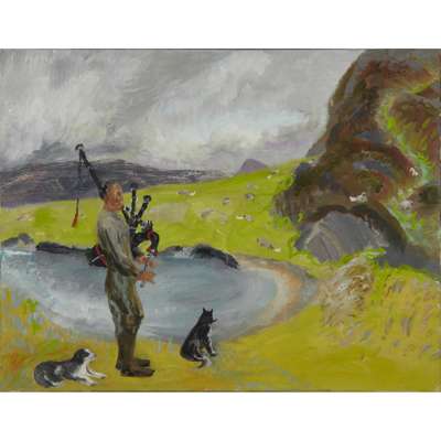 During the late 1940s and throughout the 1950s, Nicholson spent a great deal of time in the Scottish Highlands. She frequently visited the area with the poet Kathleen Raine, a close friend, staying at a retreat at Sandaig in Ross-shire on the west coast of the mainland. Inspired by the effects of light and colour created by the ever-changing weather conditions, Nicholson felt a special, profound connection to the landscape, appreciating the quiet and outstanding natural beauty and was eager to learn its folklore, customs, and people.