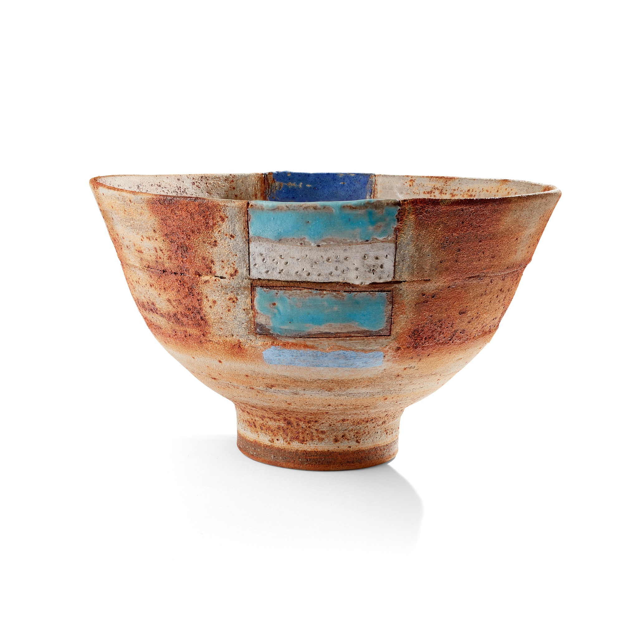 impressed artist's seal, textured and with blue and white glazes