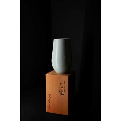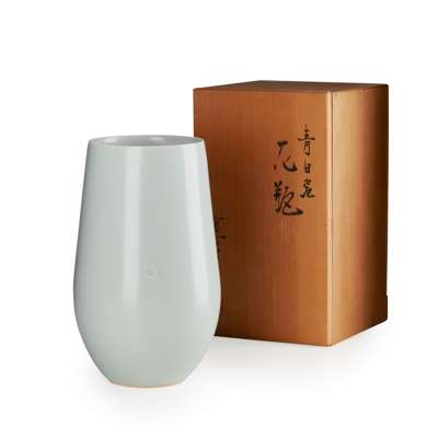 impressed maker's mark, pale celadon glaze, with a signed wood box