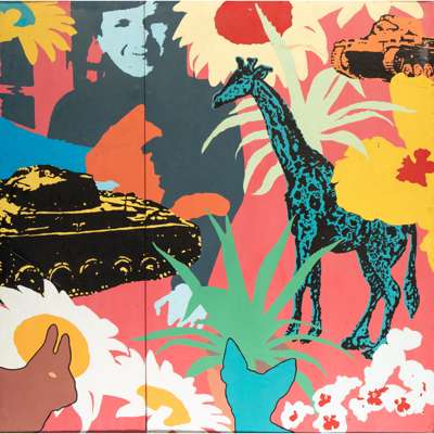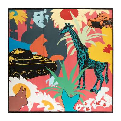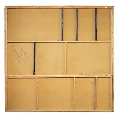 inscribed (to reverse), gloss paint on wood in two panels