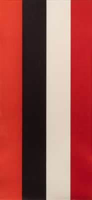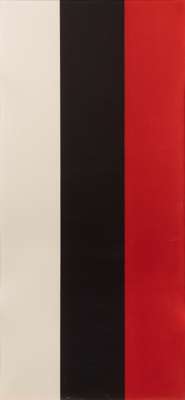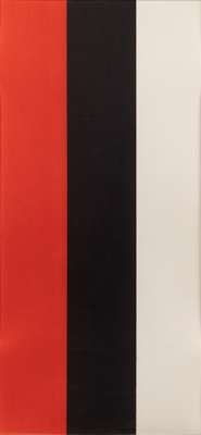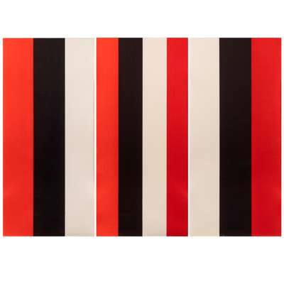 Note: This piece is from the Timberaine series that consist of 10 different woodcuts. The idea behind this series came from one of Frost's large stripe paintings, and was inspired by tree trunks in a forest. Working in woodcut allowed Frost to accomplish the quality and clarity of design he envisioned, in contrast to his painting, where the edges of the stripes were inevitably softer. In this technique Frost used three separate woodcuts to make up the pieces.