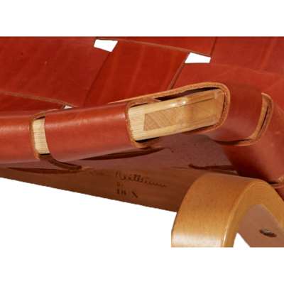 Beech ply with leather woven upholstery, one stamped 'BRUNO MATTHESON FOR DUX'
