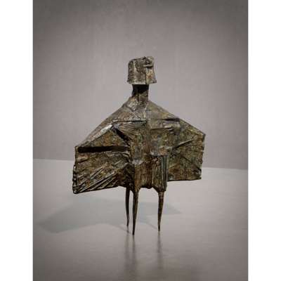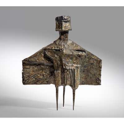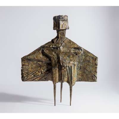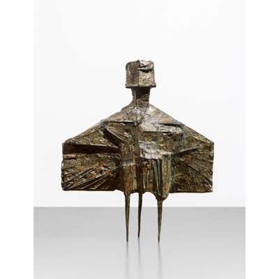 Such was the significance of Maquette for Stranger that a cast of it was selected by the British Council for inclusion in the VI Bienal de São Paulo of 1961, shortly after its creation. Herbert Read wrote about the sculptor’s contribution to the British presentation: ‘Lynn Chadwick’s vision has penetrated a psychic region where man is a tensed geometrical aeronaut, watching the skies, wings folded or outspread for flight. Such is the new image of man, the archetype of a space age.’ (Herbert Read, ‘Lynn Chadwick’, VI Bienal de São Paulo, exh.cat., 1961 quoted in Michael Bird, Lynn Chadwick, Lund Humphries, Farnham, 2014, p. 115). Chadwick was declared hors concours, or ‘beyond competition’ at the biennial, the first time a British artist had been thus honoured.