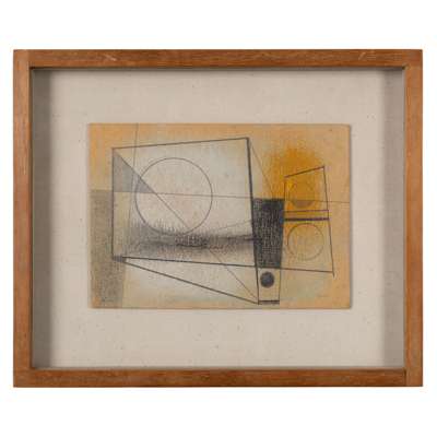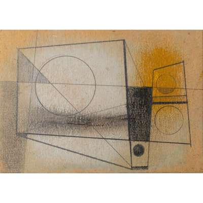 oil, pencil and crayon on cardboard, with an unfinished work (to reverse)