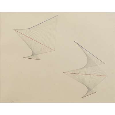 monogrammed in pencil (lower left), pencil and crayon on paper