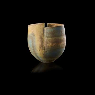 impressed artist's seal, stoneware with green and umber glazes