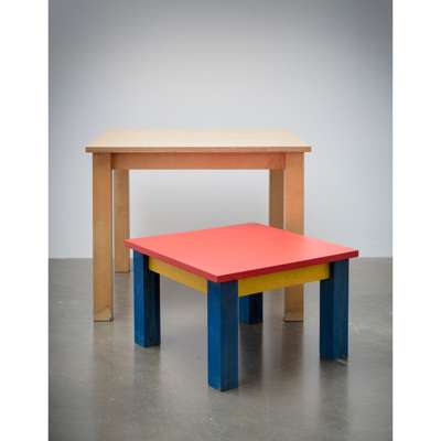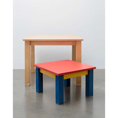 comprising a dining table and low table, Finnish birch plywood, the low table painted