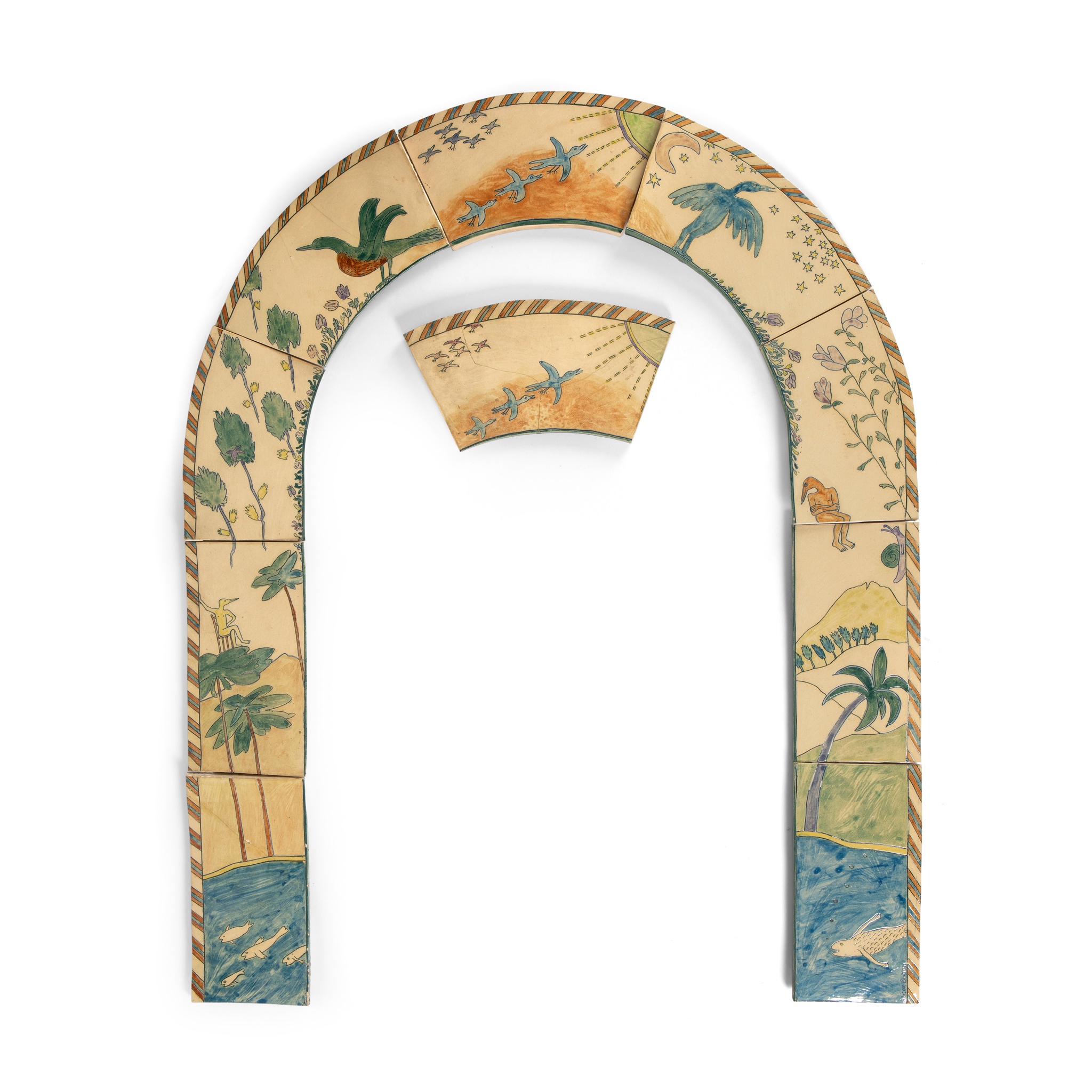 signed (lower right tile), ten piece tile set, with repeating central tile