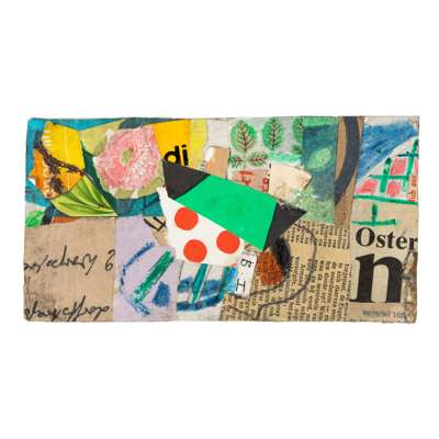 initialled, signed, titled and dated in pencil (to reverse), crayon, pencil and collage on board