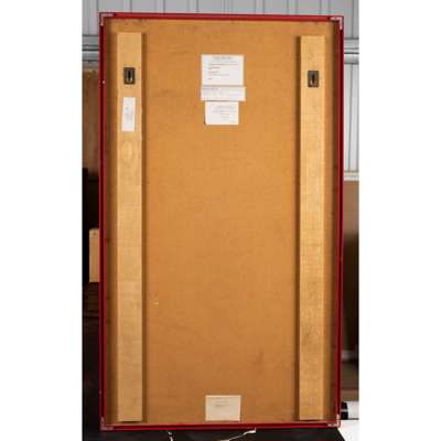signed, titled, and dated in pen (on label lower right), postcard sculpture