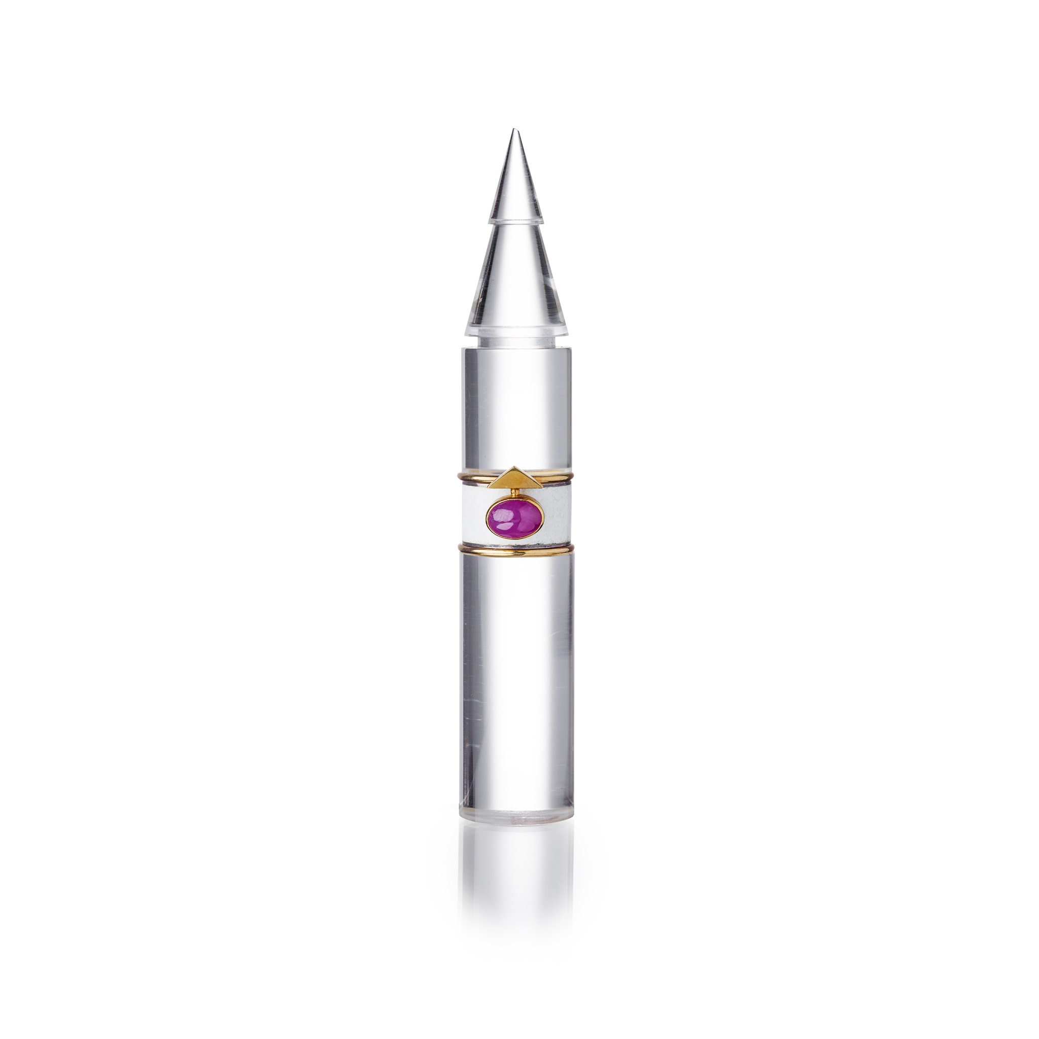 from the Indian Collection, 18ct yellow gold, silver, enamel, pink sapphire, on acrylic stand, hallmarked for London, 1994, the enamel band unhallmarked