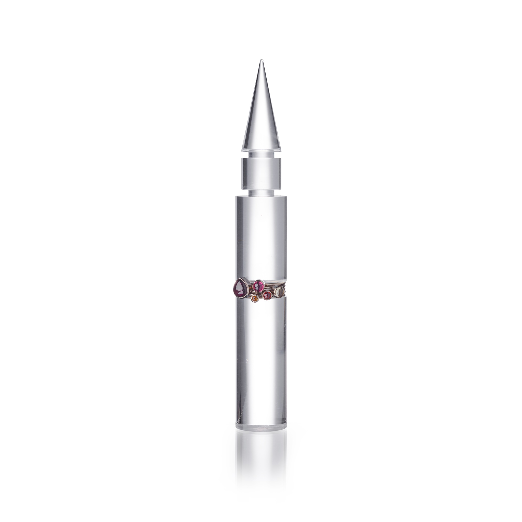 18ct white gold, garnet and citrine (pale & dark), on acrylic stand, hallmarked for London, 2003