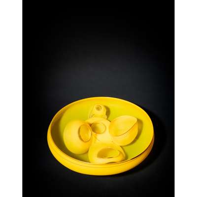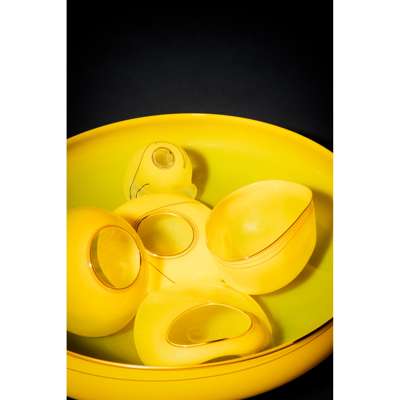 Chihuly often calls his Baskets the most inventive work he has done. Experimenting with centrifugal forces, gravity and the use of fire, he discovered new methods of creating these asymmetrical vessels with fine undulating walls, grouping them in sets with the smaller works nestled within a larger open mouthed form.