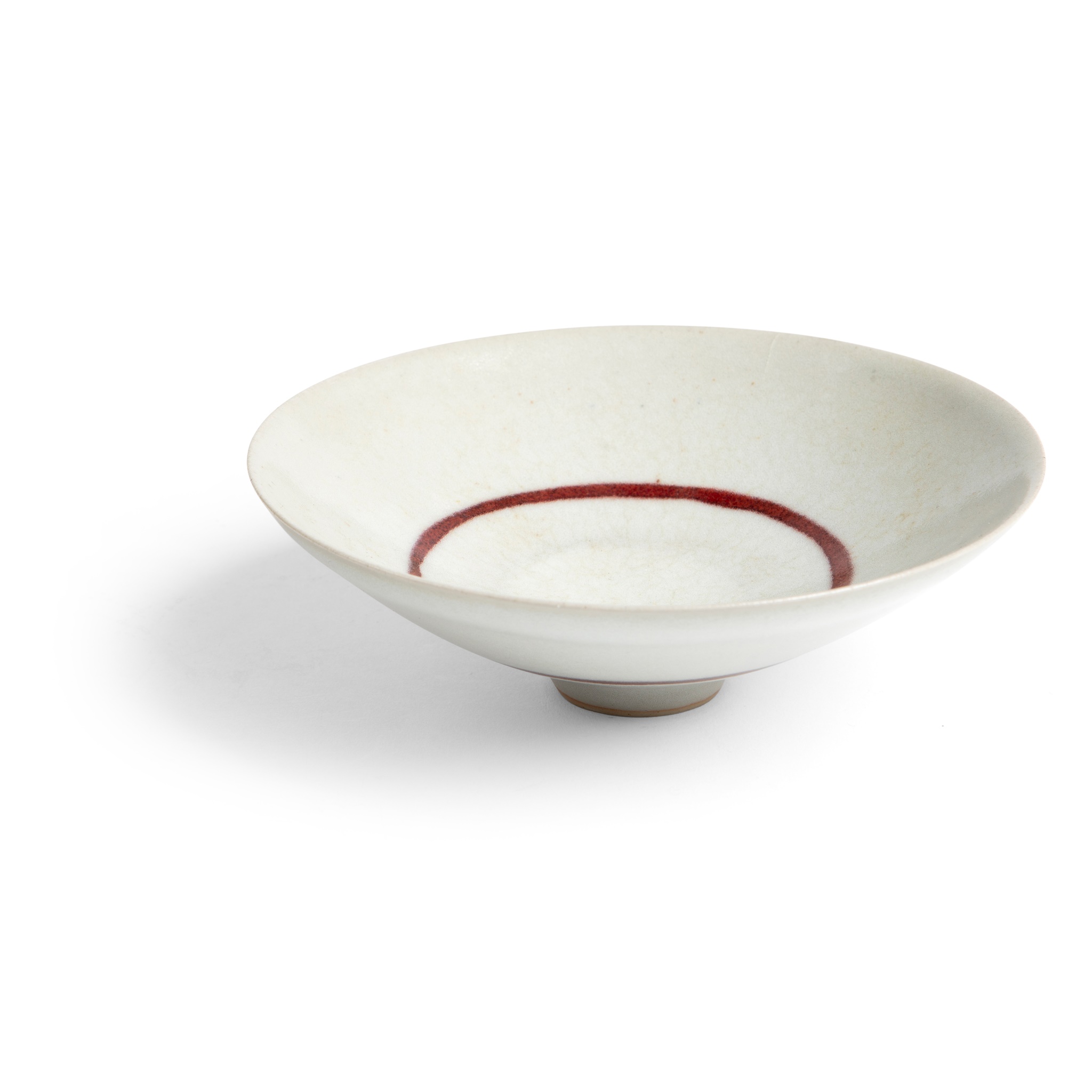 impressed artist's seal, stoneware, fine crackled celadon glaze with red band
